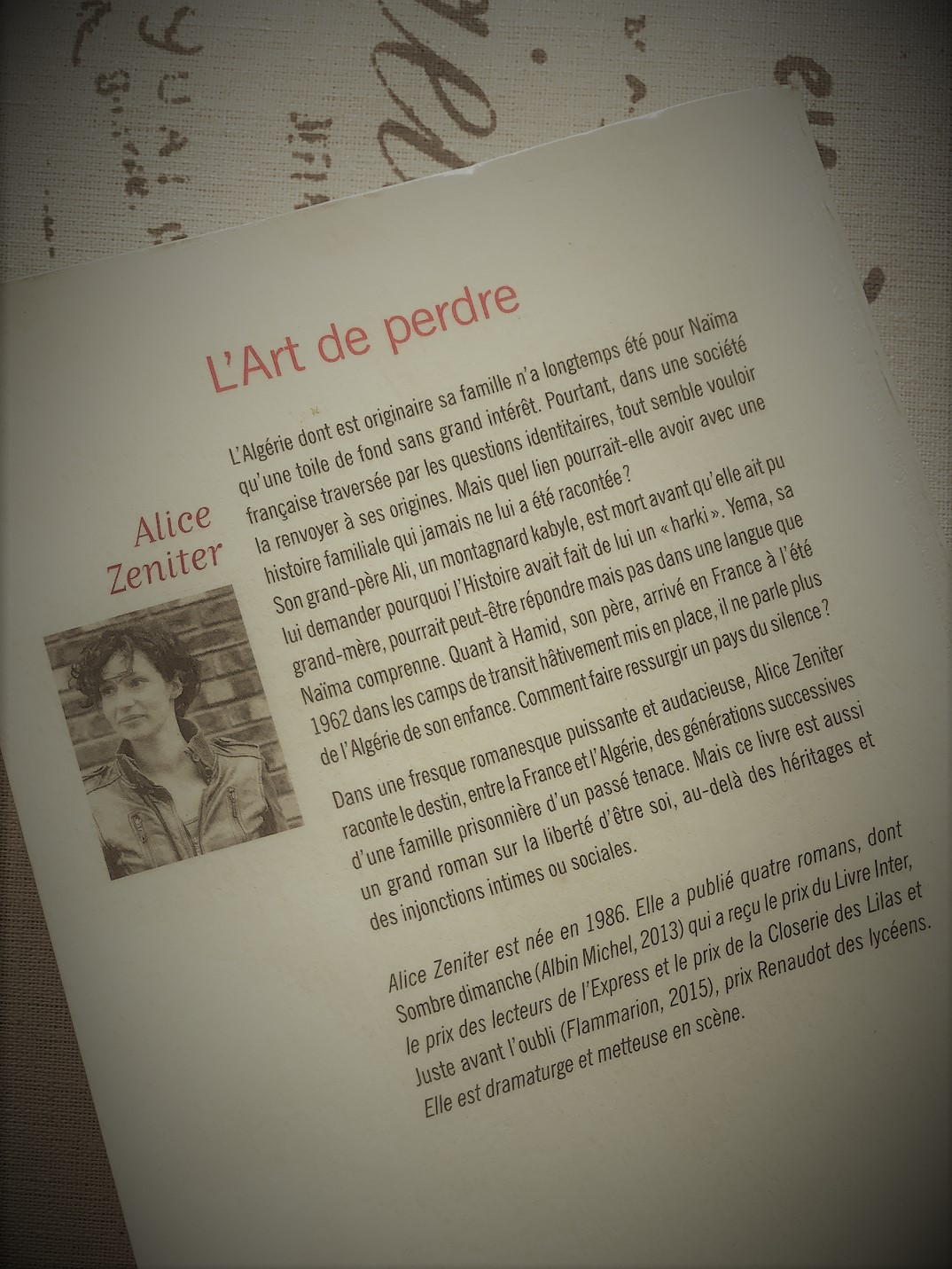 Alice Zeniter dénonce l’emploi des étiquettes comme « harki » ou « musulman ». Dans l’interview ci-après, elle nous confie que l’emploi d’une étiquette peut amputer quelqu’un de toute l’ampleur d’une vie. Parce qu’Ali a combattu pendant la seconde guerre mondiale pour les Français et parce qu’il a dû faire un choix à un moment donné durant la guerre en Algérie, il est taxé de « harki », ce qui entraînera des conséquences irréversibles pour lui et sa descendance.